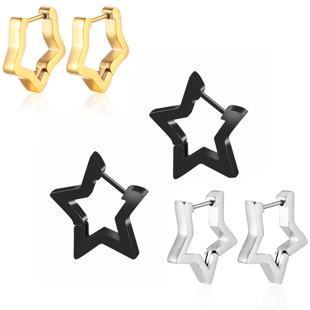 brinco de estrela em aço inox masculino feminino argola preta preto prata dourado estilo moderno estrelinha do céu