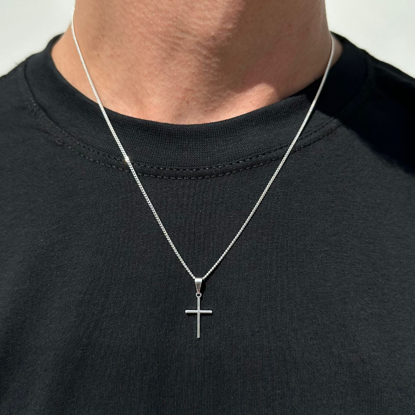 Correntinha Masculina Banhada a Prata 925 + Pingente Cruz Palito