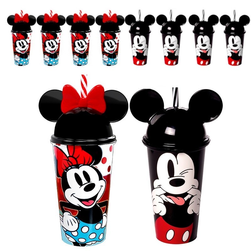 Kit Copos Shake do Mickey e Minnie Mouse com Orelhas Tampa e Canudo 500ML