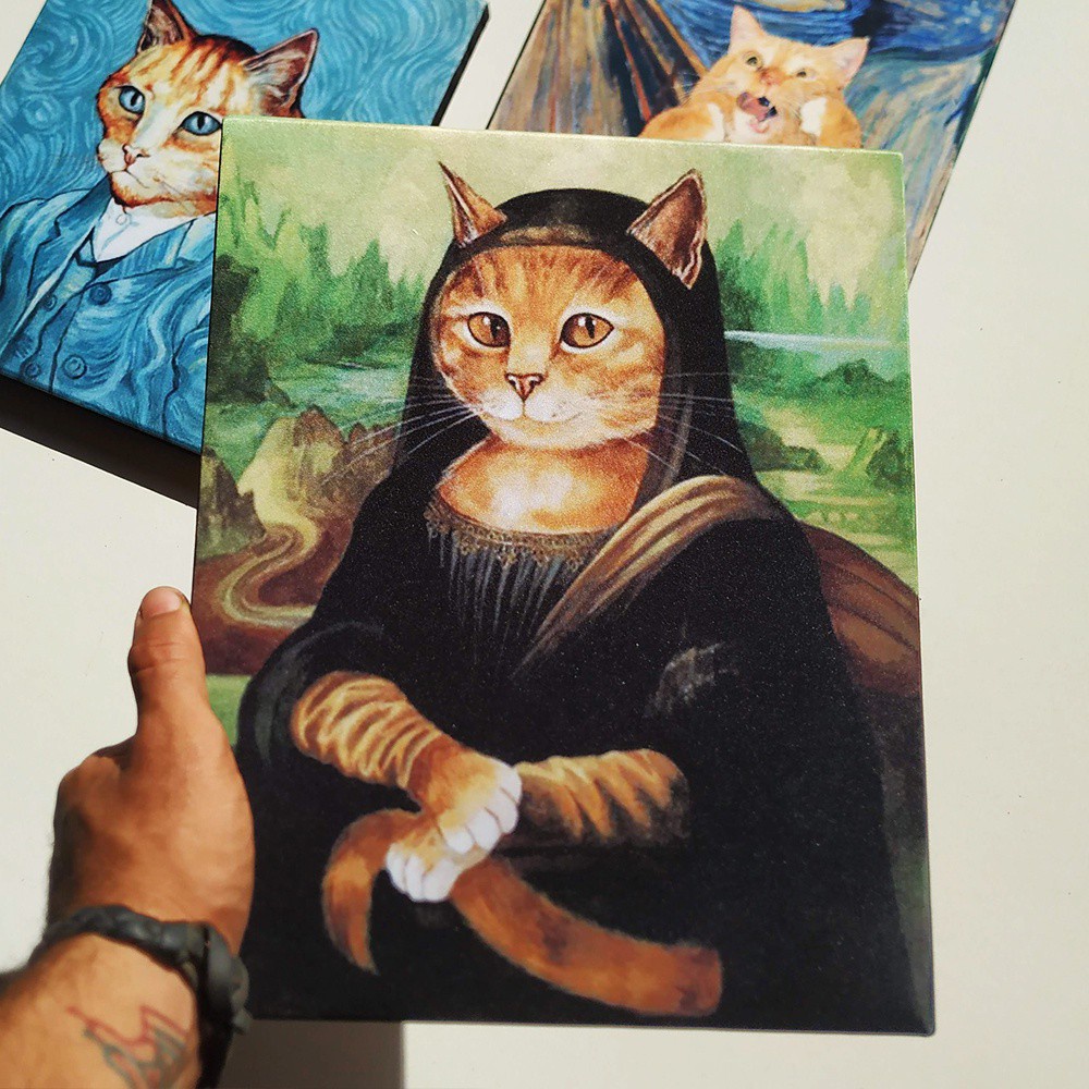 Quadro decorativo tela. Mona lisa. Obras de arte cm rosto de gatinho