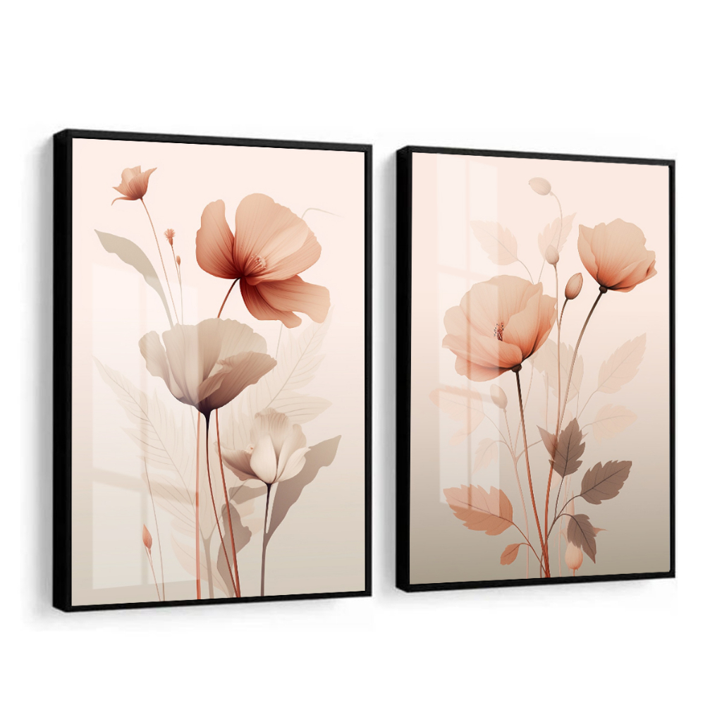 Kit de Quadro Decorativo Flores Folhagem Neutro com Vidro