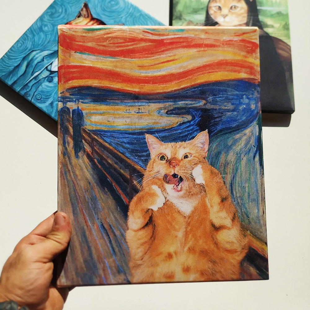 Quadro decorativo O grito com rosto de gatinho. O miado.
