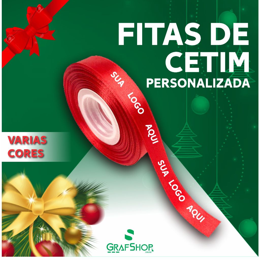 Fita de Cetim Personalizada 15MM - 50/25 metros (logomarca, aniversário, nome, empresa, loja, embalagem, escrita, frase)