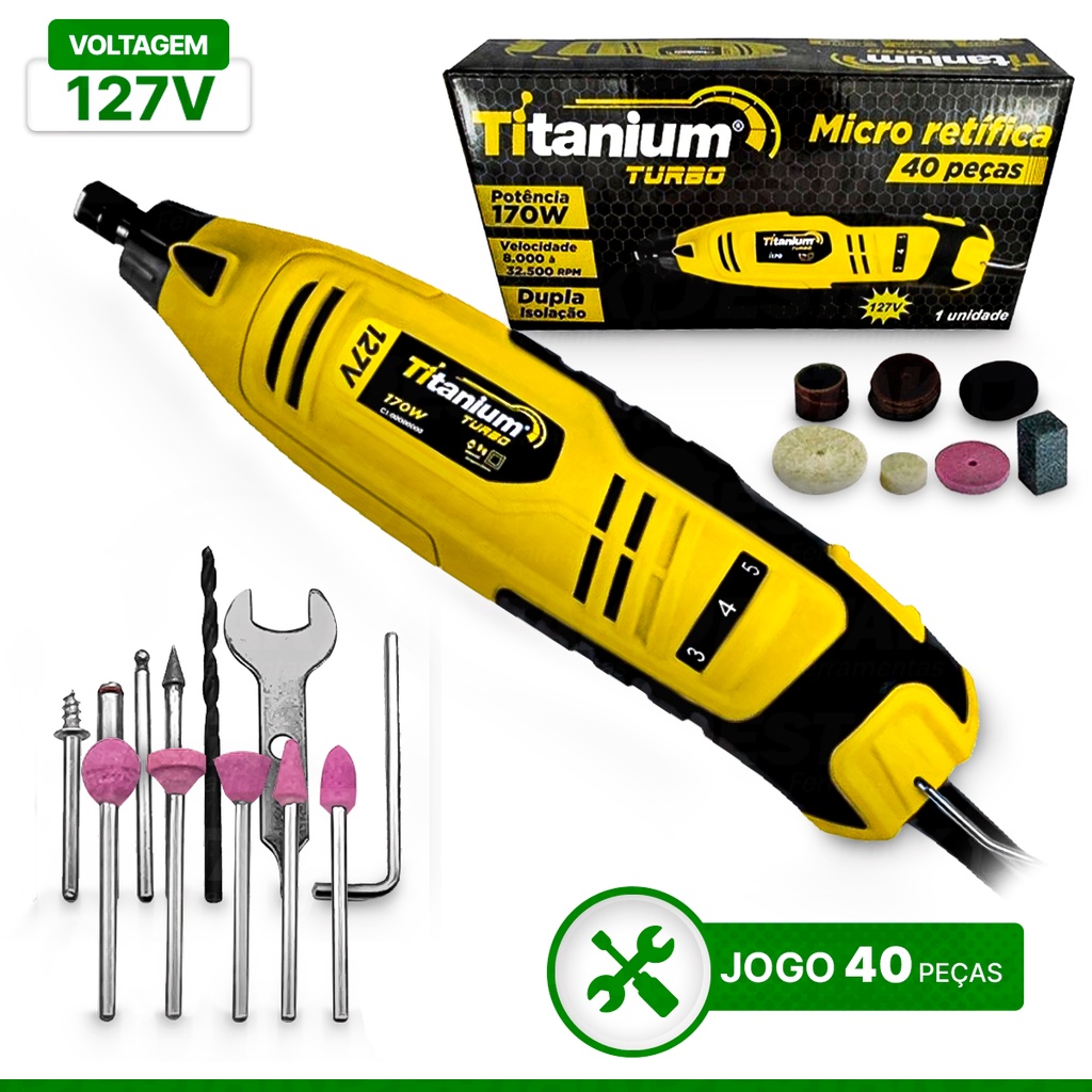 Mini Retifica Turbo Portátil Eletrica 127V Lixadeira Com 40 Acessórios