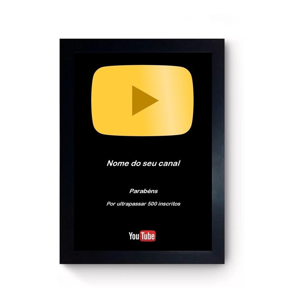 Quadro Placa 500 Inscritos Youtube Personalizado Dourado