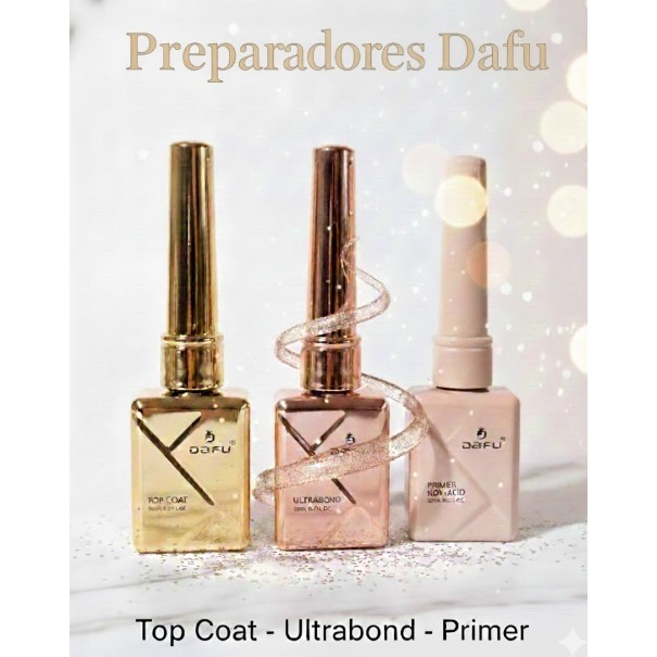 Kit Preparadores Dafu - Primer + Ultrabond + Top Coat Unhas de Gel Blindagem