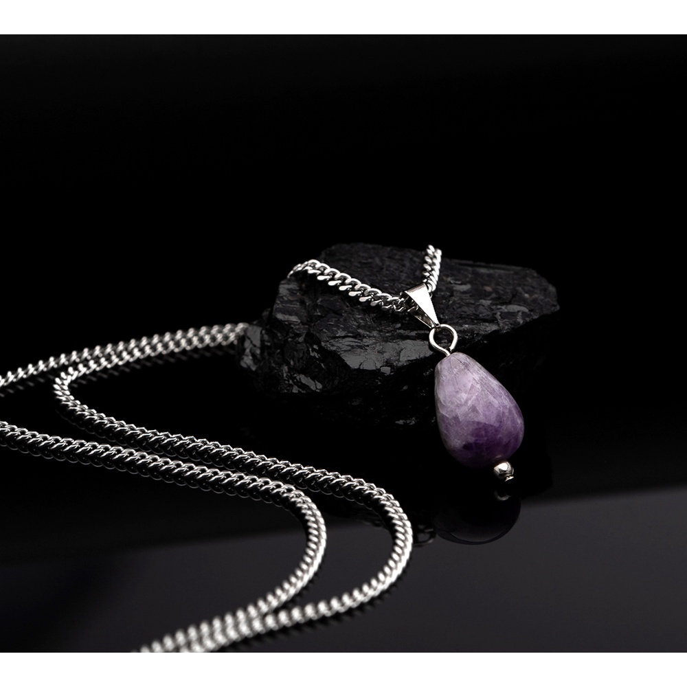 Corrente Cordao Colar Aco Inox J-617 Pingente Pedra Ametista + Estojo OGrife
