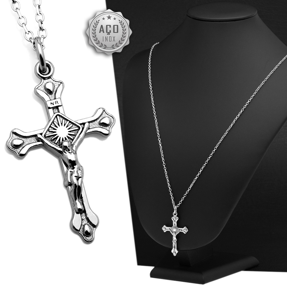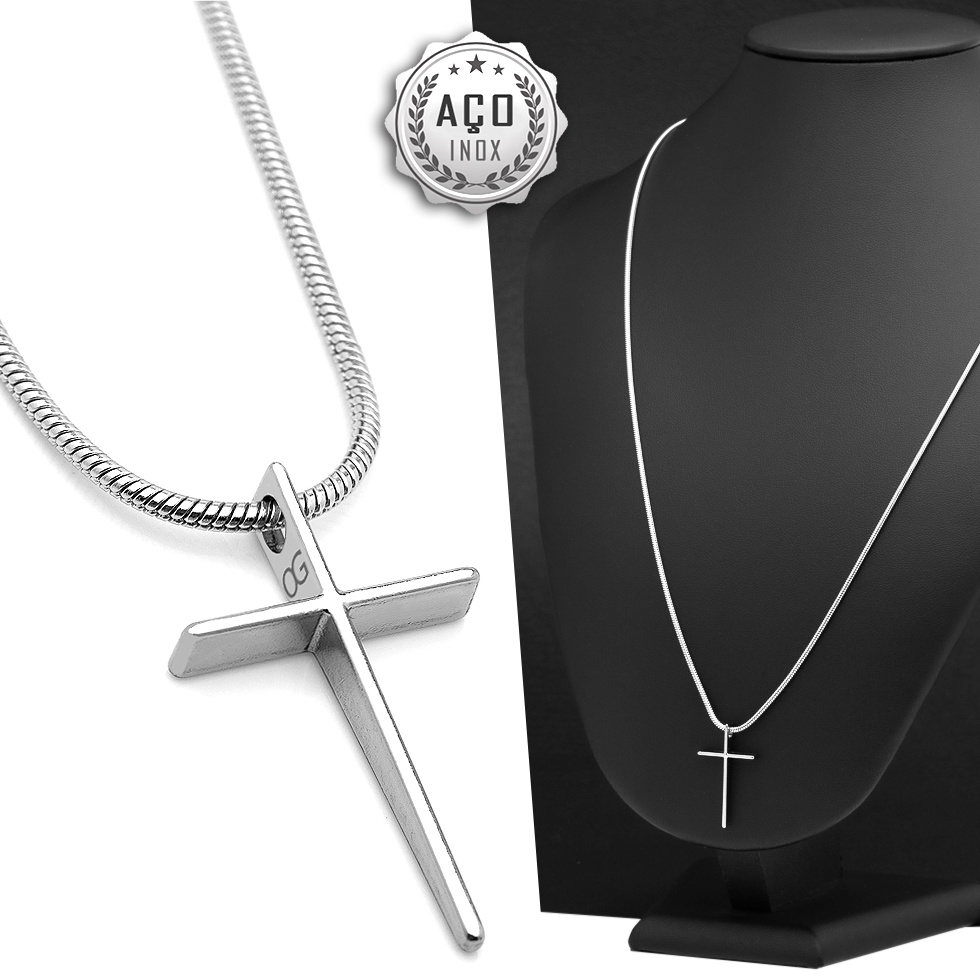 Corrente Cordao Aco Inox J-1090 Pingente Cruz Crucifixo OGrife