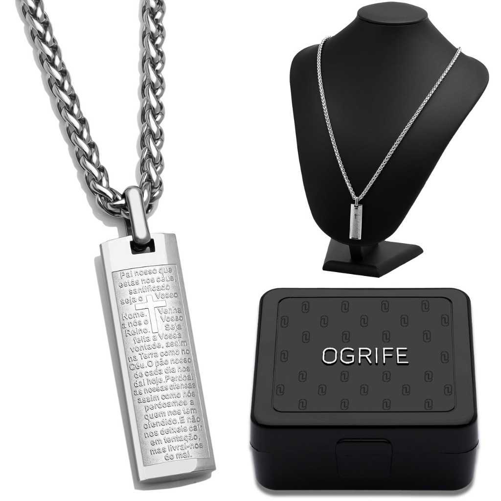 Corrente Cordão Pingente Placa Pai Nosso J-1379 Aço Inox 316 OGrife