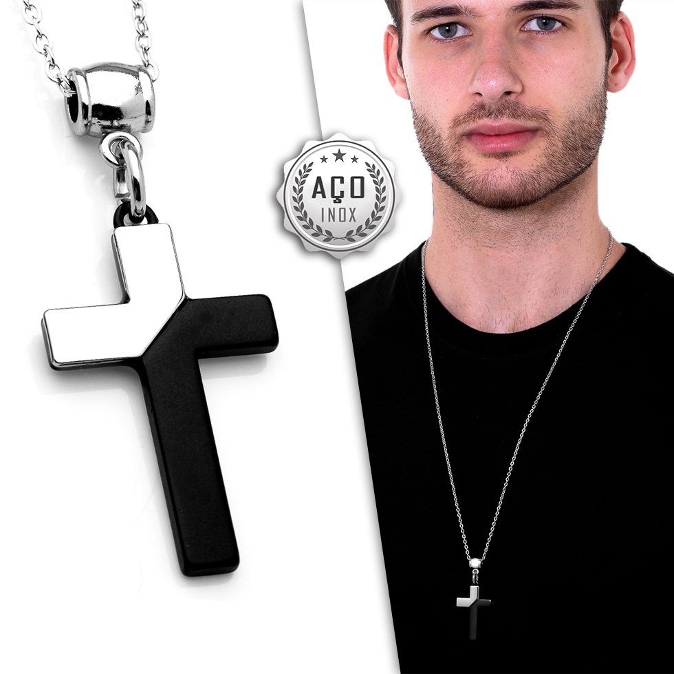 Corrente Cordao Masculino OGrife Aco Inox J-690 Pingente Crucifixo + Estojo