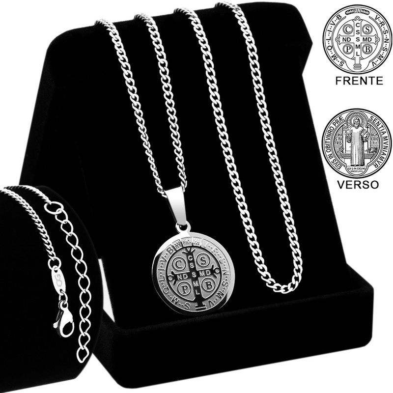 Kit Corrente Colar Aço Inox Prata J-1277 Pingente São Bento - Não Preteja OGrife