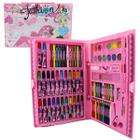 Maleta Kit de Arte Escolar com 68 98 Peças Glam Girls Pintura Desenhos Giz Canetinha Tinta Pincel para Colorir