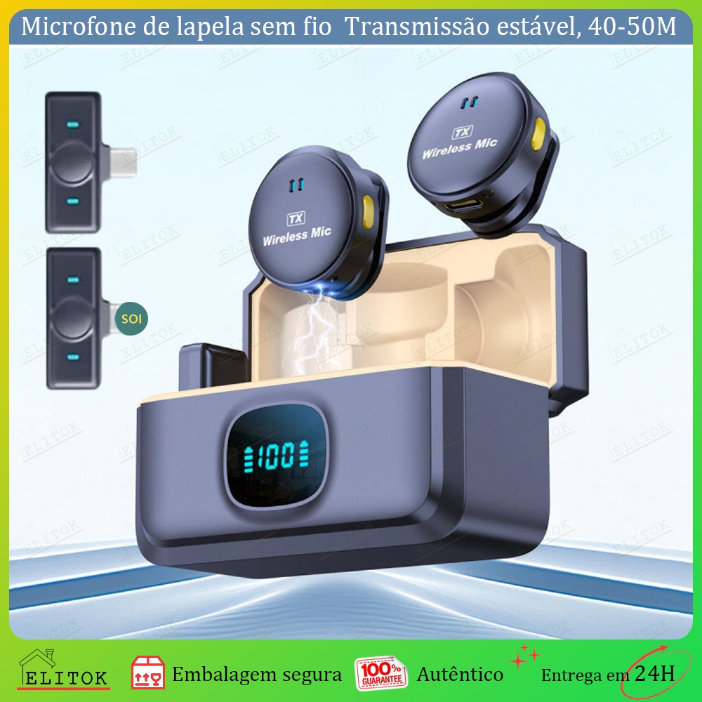 MINI Microfone Profissional De Lapela Sem Fio Com Caixa De Carregamento Para iPhone E Android/Celular Tipo-C/Youtube/Streaming Ao Vivo