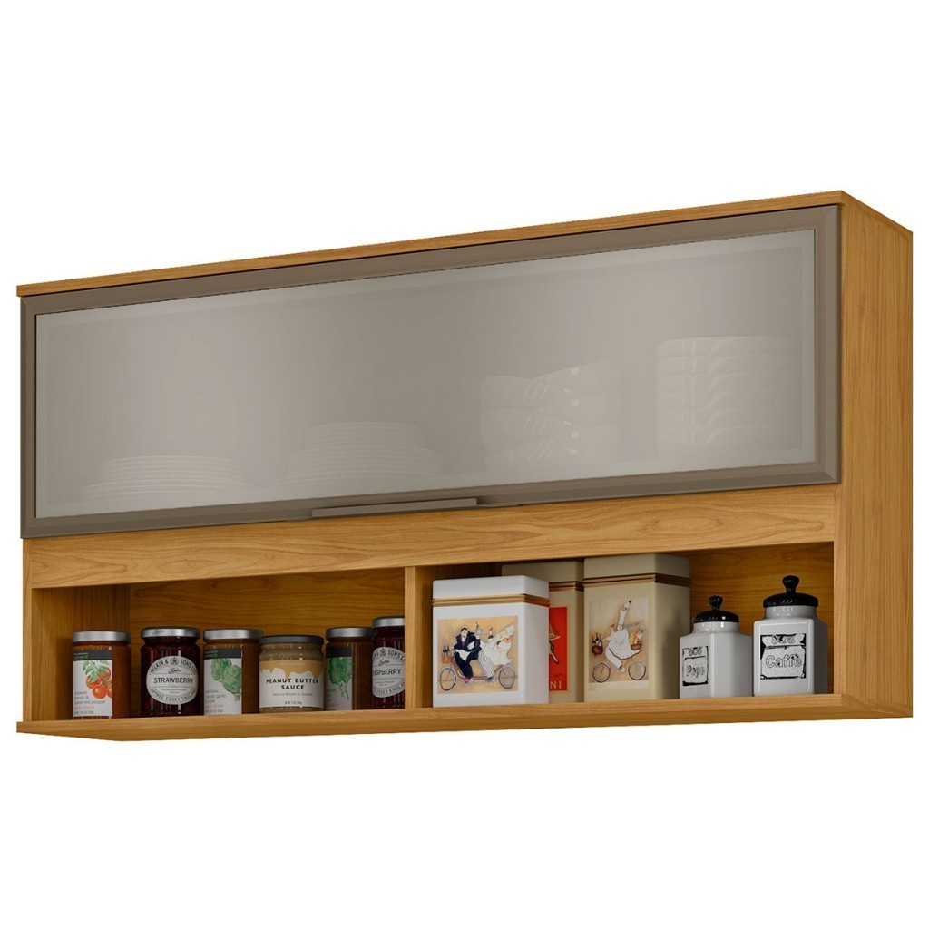 Armário Aéreo Cozinha Verace 120 Cm 1 Porta Basculante com Vidro Marrocos/Off White - Mx Móveis