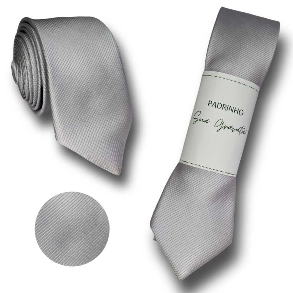 Gravatas Kit 5 a 20 p/ Padrinhos Prata Slim