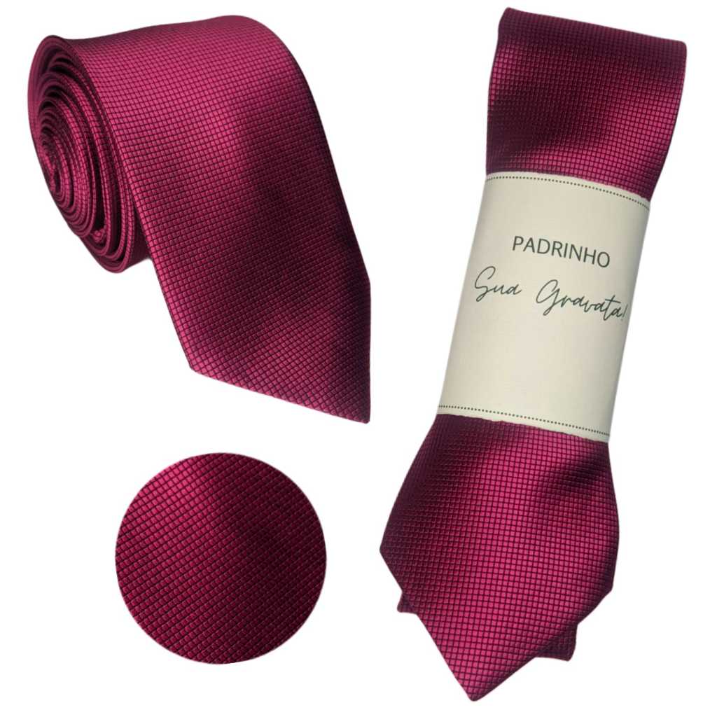 Gravatas Kit 5 a 20 p/ Padrinhos Rosa Fucsia Quadriculada Slim
