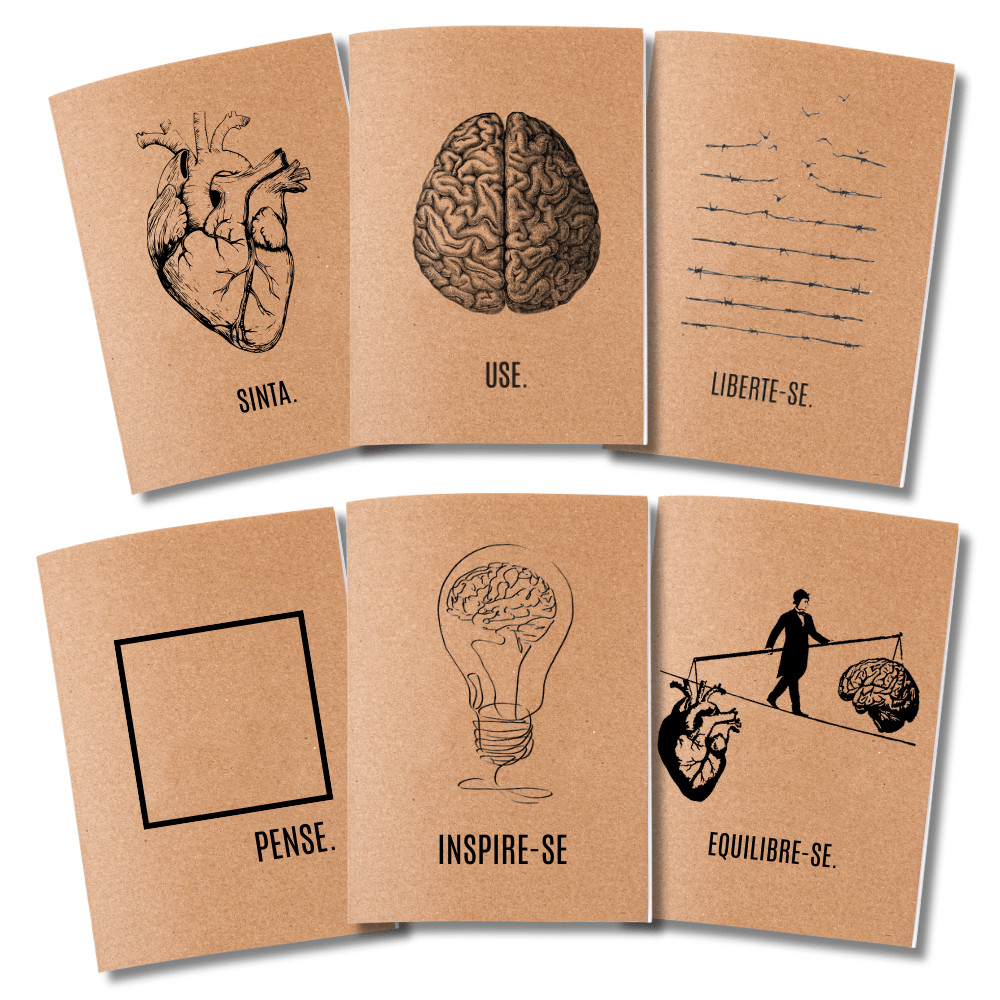 Kit 6x Cadernetas Inspiração Capa Kraft Flexível 40 Pág Pólen A5