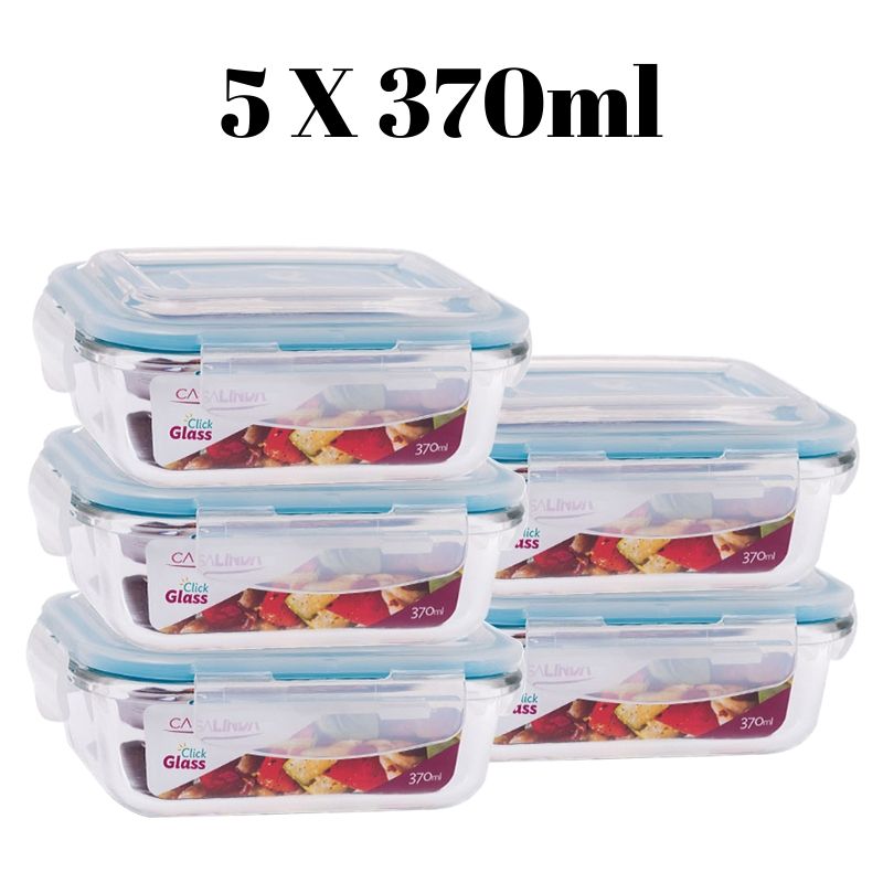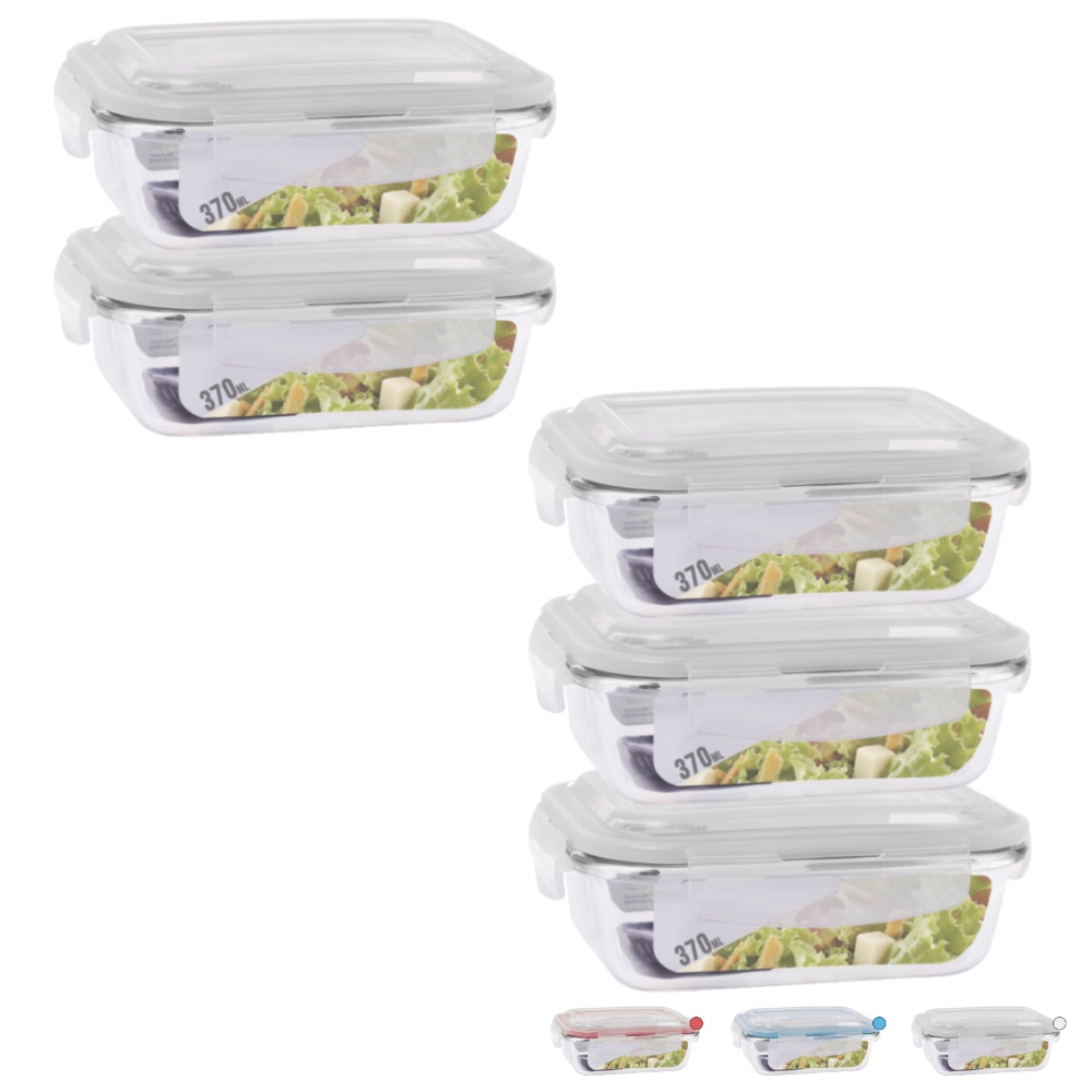 Conjunto 5 Potes com 370ml Vidro Hermético Marmita Fitness