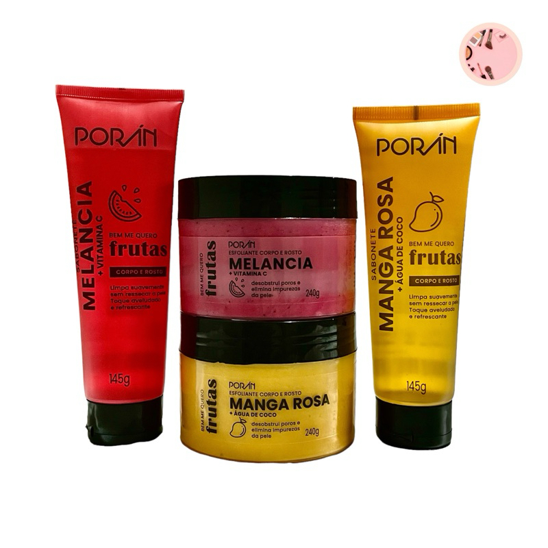 Kit Melancia ou Unidade Esfoliante de Corpo e Rosto, Sabonete Facial e Hidratante (Escolha o seu) - Poran