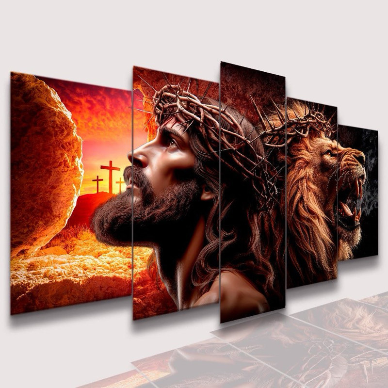 Conjunto Quadro Decorativo Mosaico Jesus Cristo Leão de Juda e o Cordeiro Kit de Quadros Decorativos Conjunto Kit de Quadros Decorativos para Parede Sala e Quarto PVC Decoração para Sala de Jantar E