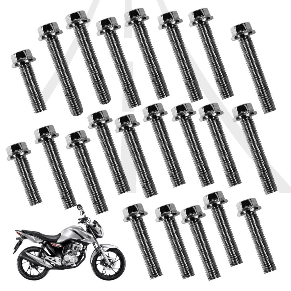 Kit Parafuso Tampa do Motor Cromado 160 TODOS 2 Lados 22 Peças.