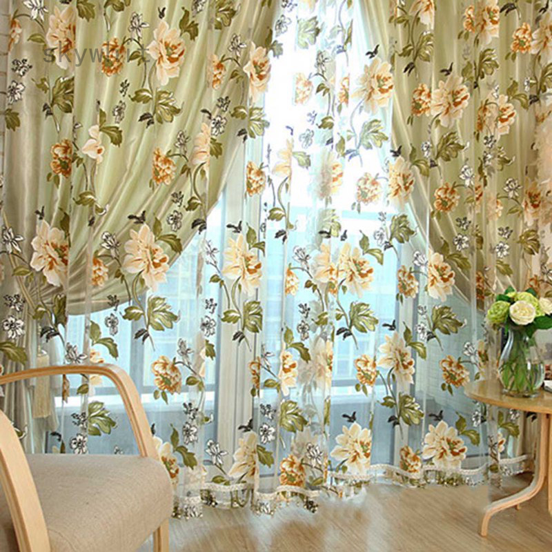 2 Cores Peony Cortina Porta Janela Cortina Divisor De Quarto Cortina De Renda Flores Cortina