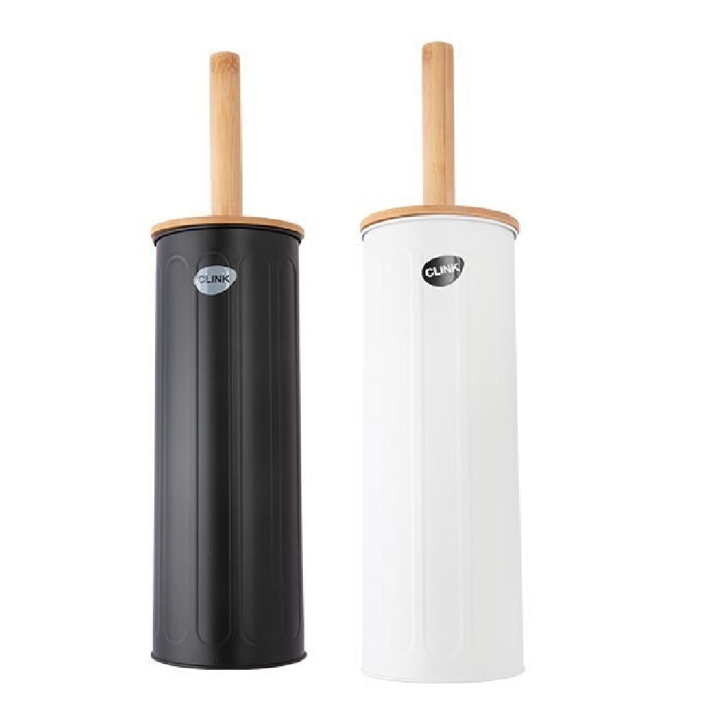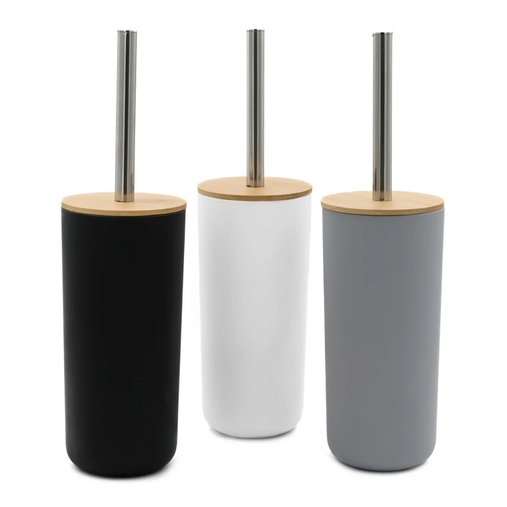Escova 9.7 x 9.7 x 38CM Vaso Sanitário Tampa E Cabo Bambu Ou Inox Com Suporte Preto Ou Branco Banheiro