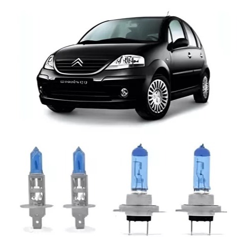 Kit Lâmpadas Super Branca H7 H1 Citroen C3 2003 A 2012