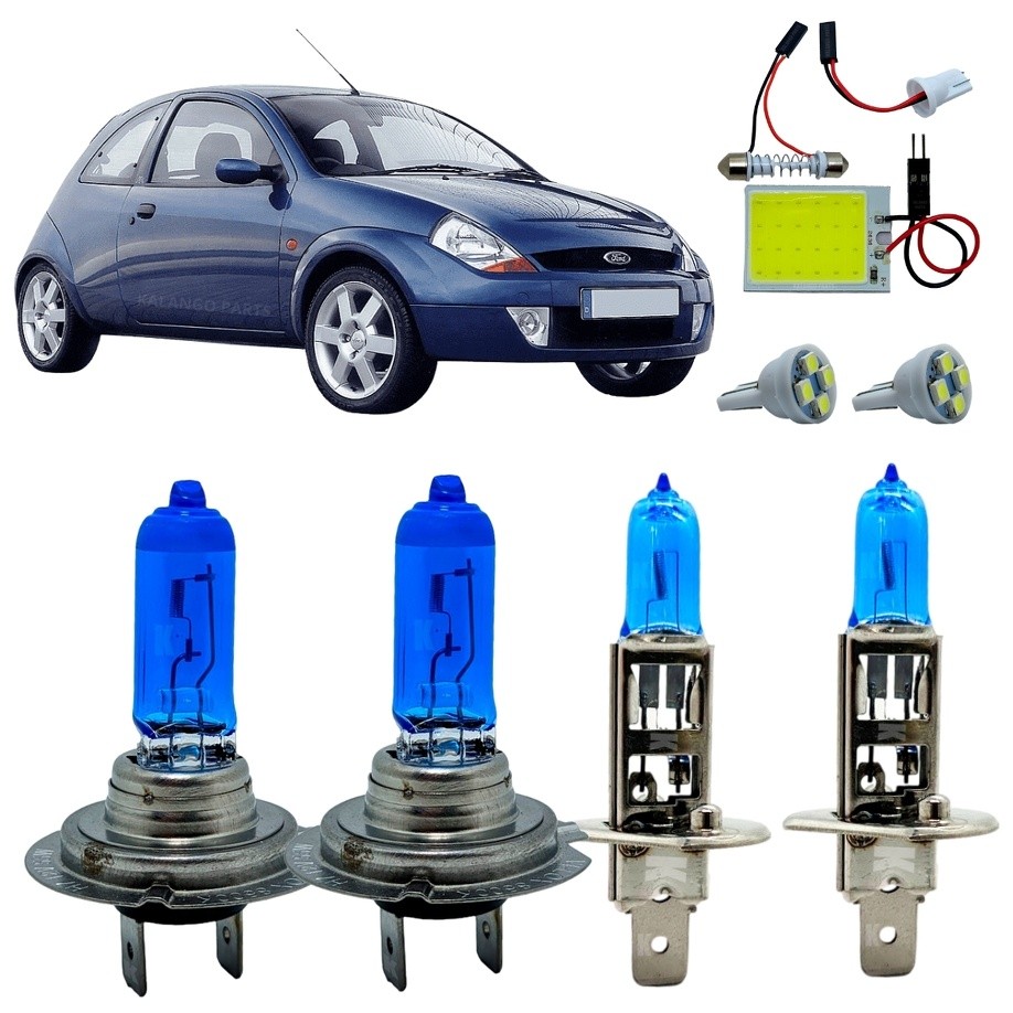 Kit Lâmpadas H7 H1 Super Branca Alto Baixo 8500K Ford Ka 1997 A 2007 Luz De Teto + T10