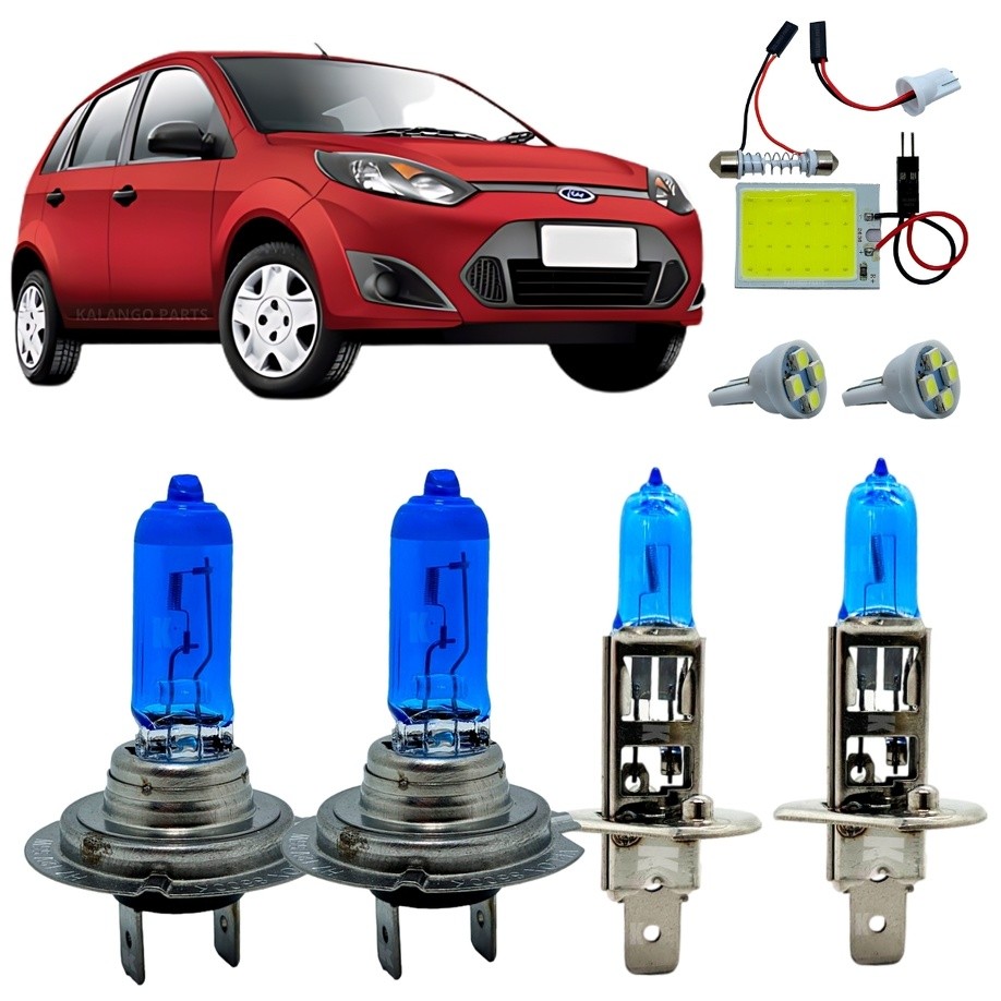 Kit Lâmpada H7 H1 Super Branca 8500K Alto Baixo Ford Fiesta 2007 A 2020 Luz De Teto + Pingo T10