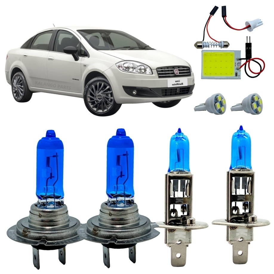 Kit Lâmpadas H7 H1 Super Branca 8500K Alto Baixo Fiat Linea 2007 A 2016 Luz De Teto + T10