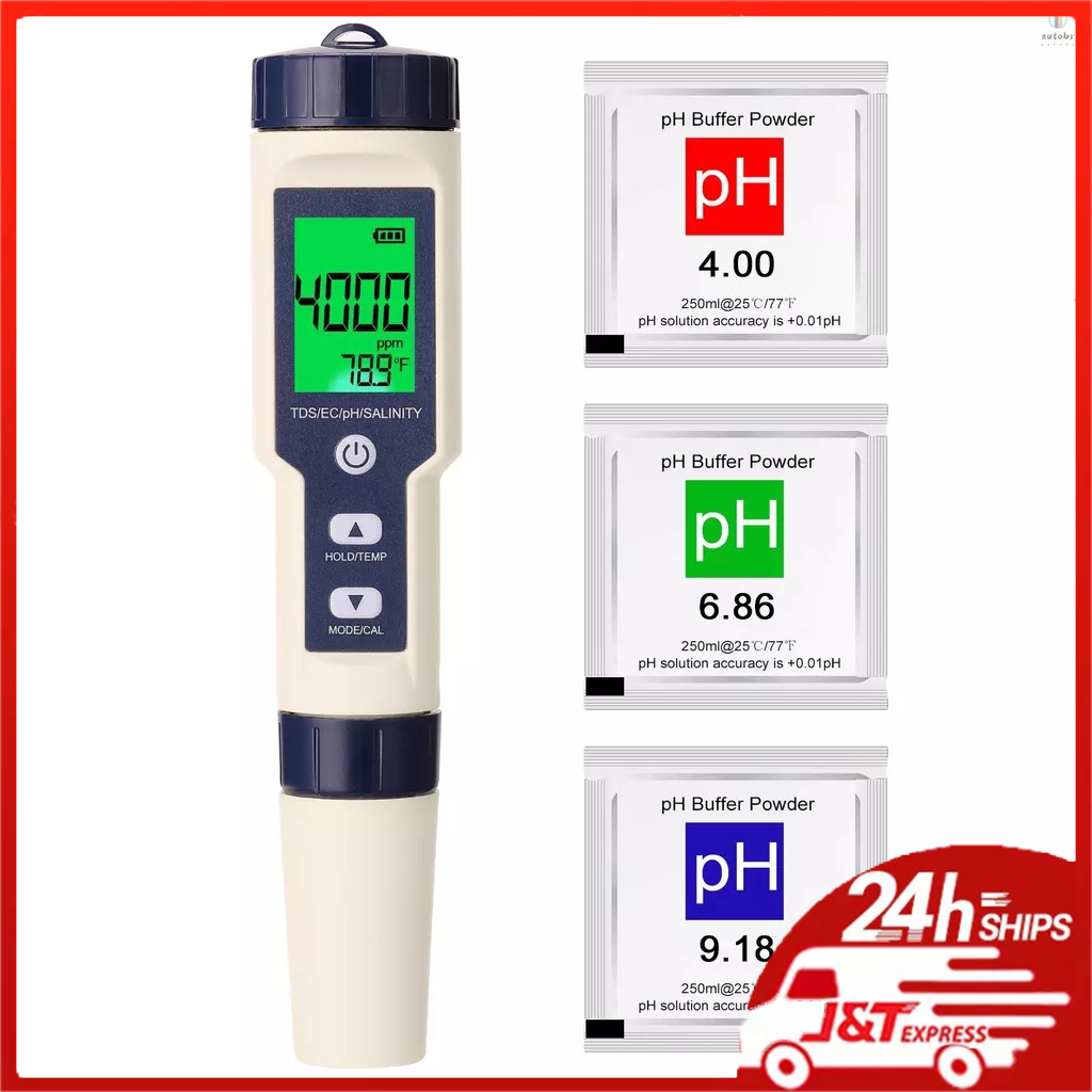 Medidor Digital De Salinidade De Temperatura 5 Em 1 PH TDS EC , À Prova D'água Com Função De Calibração Automática , Testador De Qualidade Da Água
