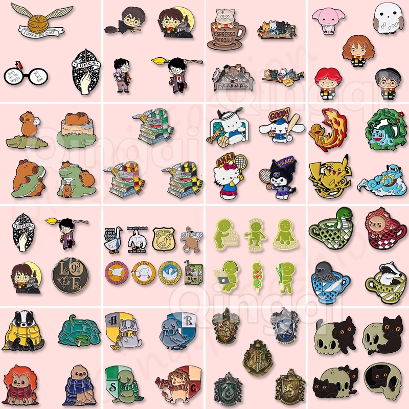 2-7Pcs/Set Cute Magic Academy Broche De Esmalte Conjunto De Broches De Cartoon Potter Crachás Mochila Coleção De Jóias De Filme Presentes Para Amigos