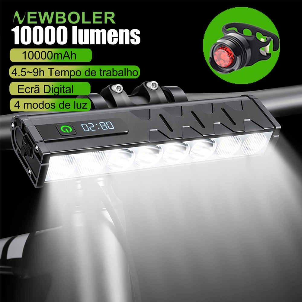 Newboler 10000 Lumens Luz De Bicicleta 10000mAh Mostrador Digital Farol Com Concha De Alumínio Recarregável Lâmpada Frontal De Ciclismo À Prova D'água