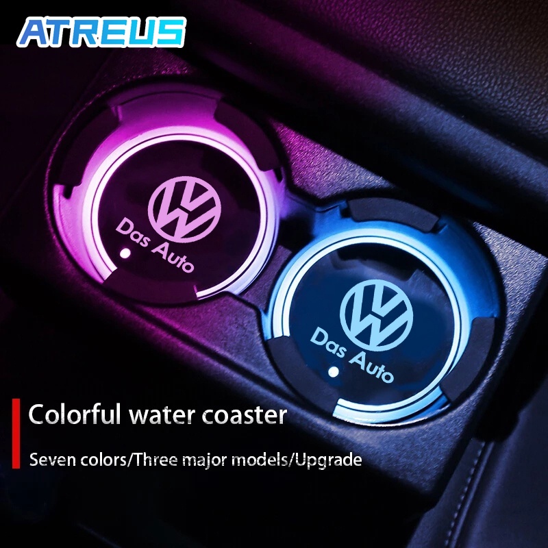 Volkswagen Tapete Antiderrapante Com Claro LED Colorido Luminosa Para Carro Copos De Água Bases Copos Para Volkswagen Golf Mk4 Mk7 MK3 jetta mk6 Up Passat b5 b6 b7 Tiguan VW Polo 9n 9n3 gol g5 g4 g3 g6 Nivus Fox new Beetle Virtus