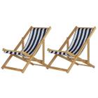 Kit 2 Cadeiras Espreguiçadeira Dobrável de Madeira Varanda Jardim Piscina Natural S/B Tecido Listrado Azul e Branco
