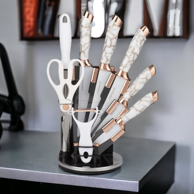 Jogo De Facas Marmorizadas Aço Inoxidável 9 Peças