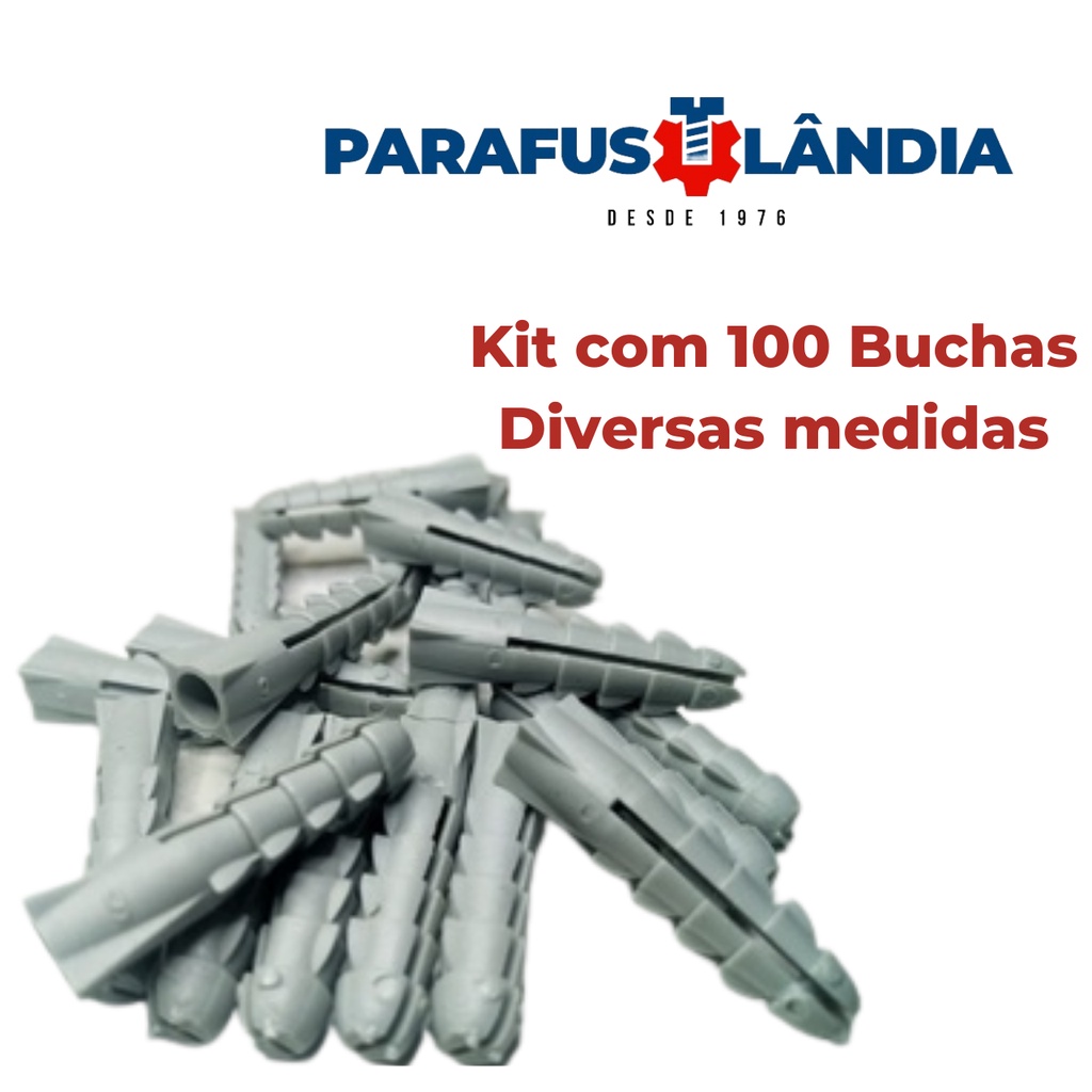 Kit 100 Buchas de Nylon Alta Qualidade para Alvenaria Tamanhos S5 S6 S7 S8 S10