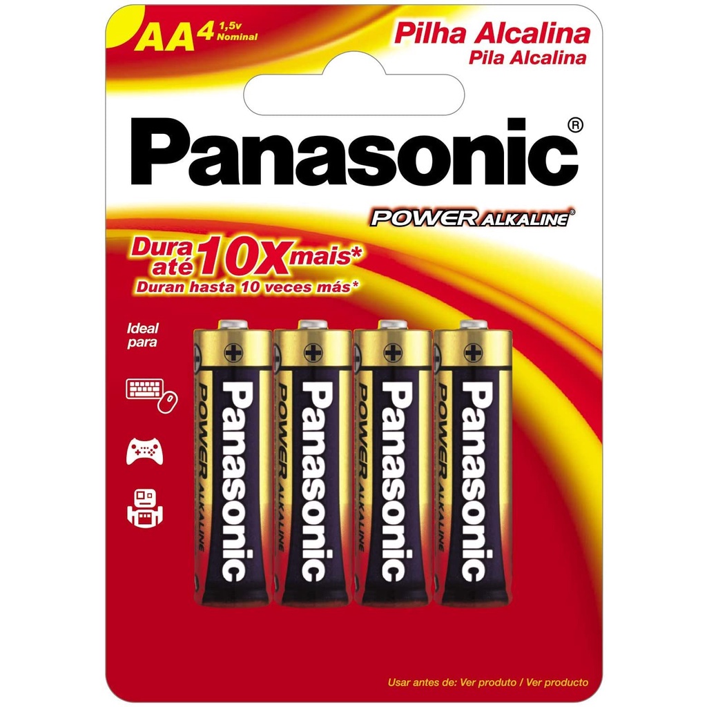 Pilha AA Pequena Panasonic Alcalina - Pilha Panasonic 2 APanasonic Power Alkaline - Kit 4 Pilhas AA Panasonic