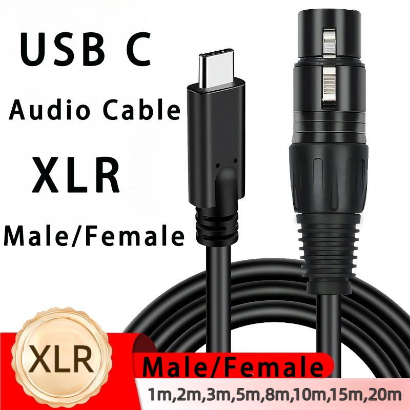 1m 2m 5m 10m 20m USB C Para XLR Macho Fêmea Cabo Tipo 3 Pinos Microfone Adaptador De Áudio Console De Mistura De Telefon