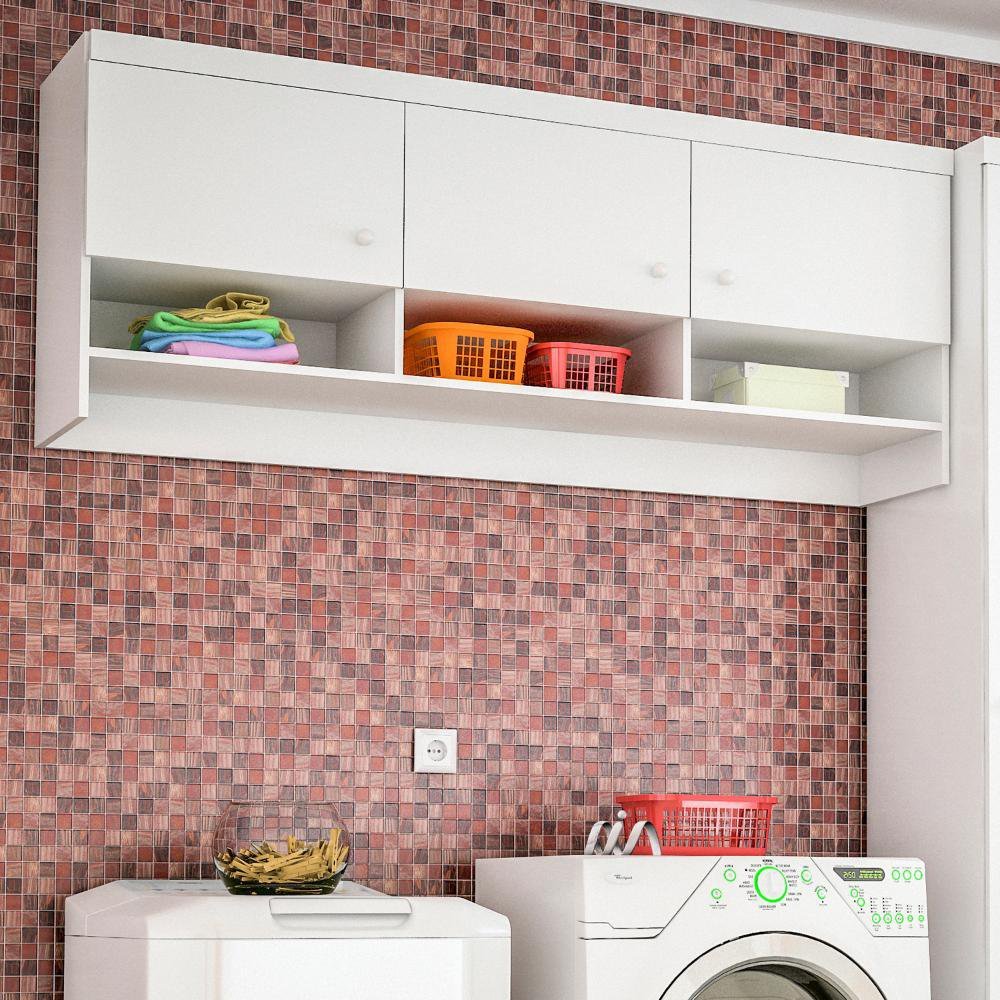 Armário Aéreo Lavanderia 3 Portas Branco Elias Shop JM