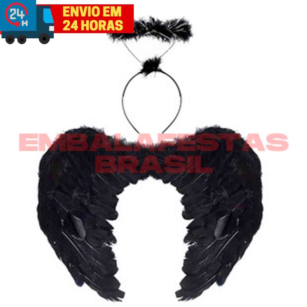 Kit Fantasia Tiara e Asa de Anjo Preta Carnaval Festas e Eventos
