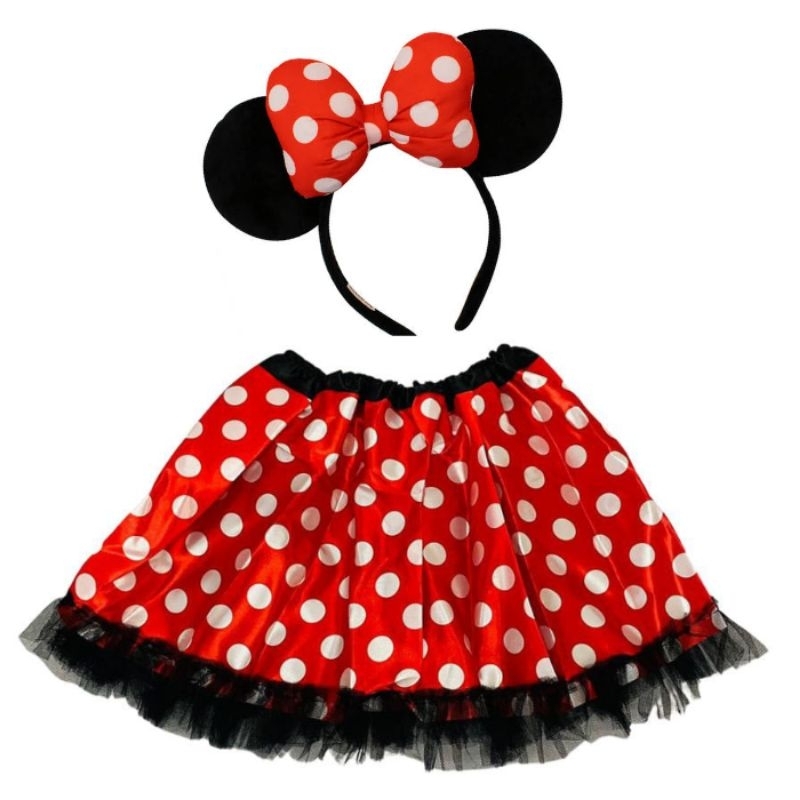 Kit Saia de Tule e Tiara, Fantasia Carnaval, Ratinha De Orelhas Vermelhas