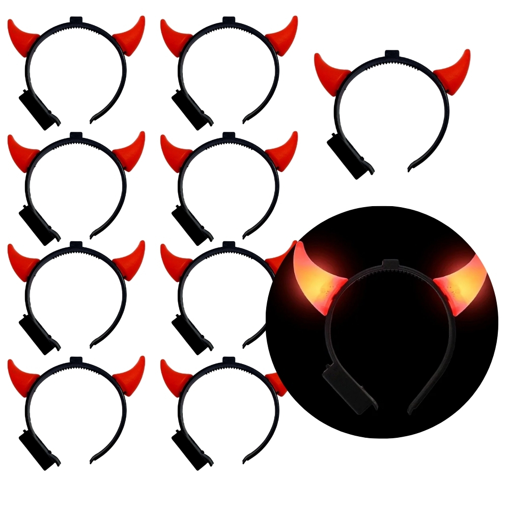Kit 10 Tiara Diabinha Com Led Para Carnaval E Halloween Arco De Chifre Com Luz Diabinho