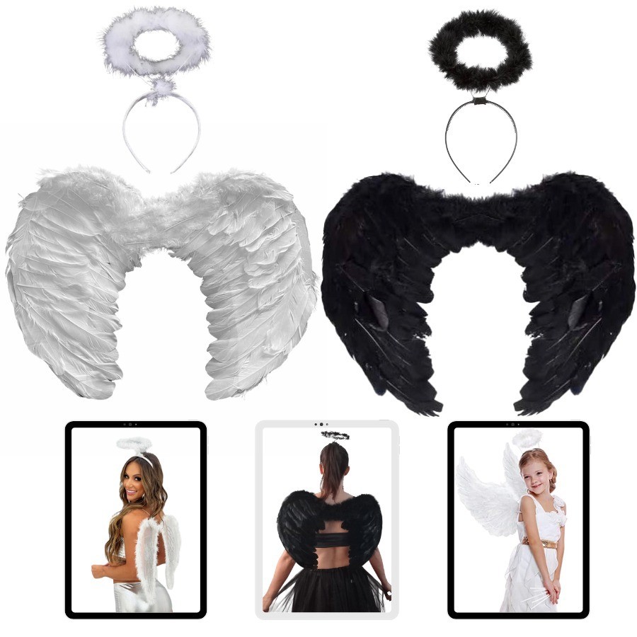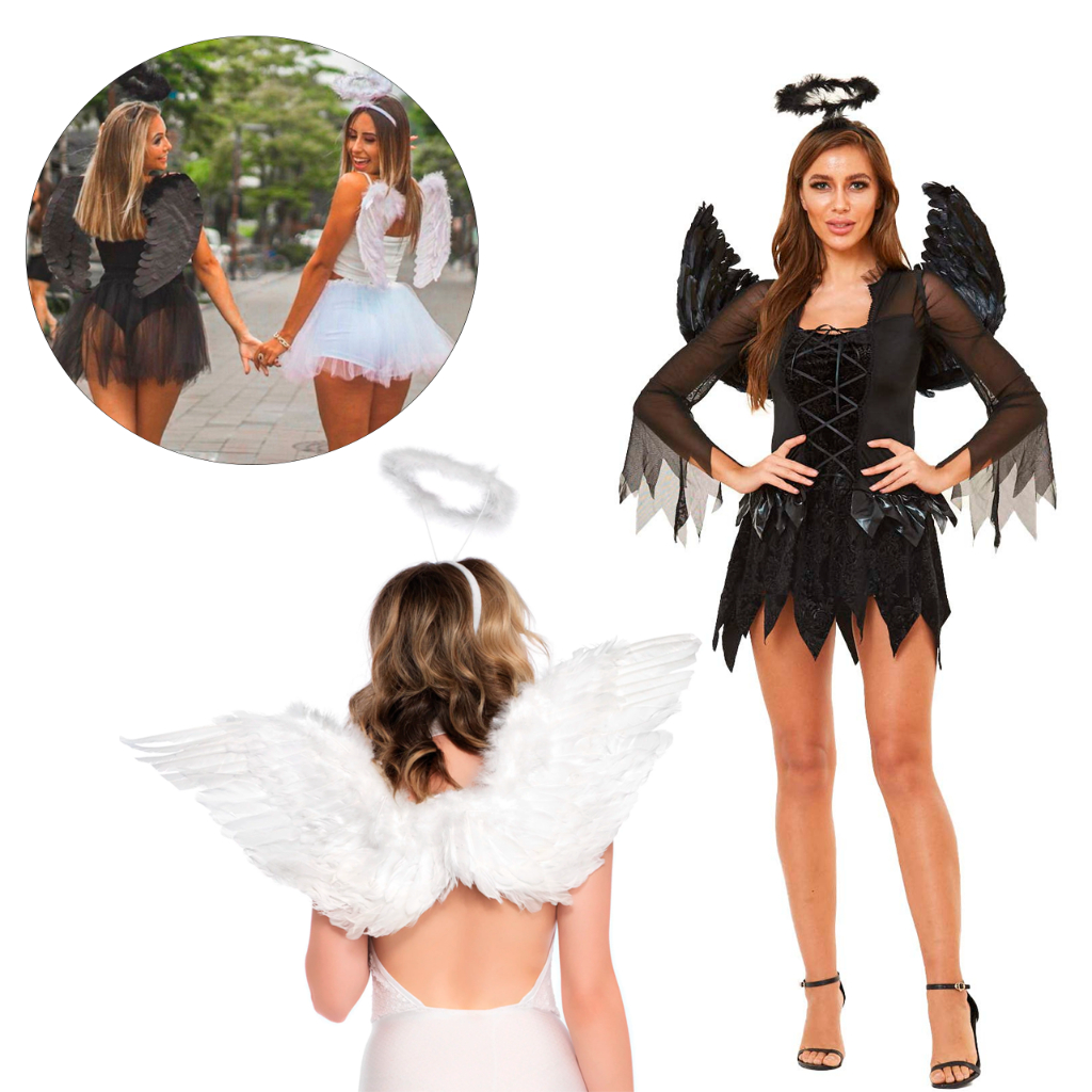 Kit Tiara E Asa De Anjo Negro E Branco Fantasia Carnaval