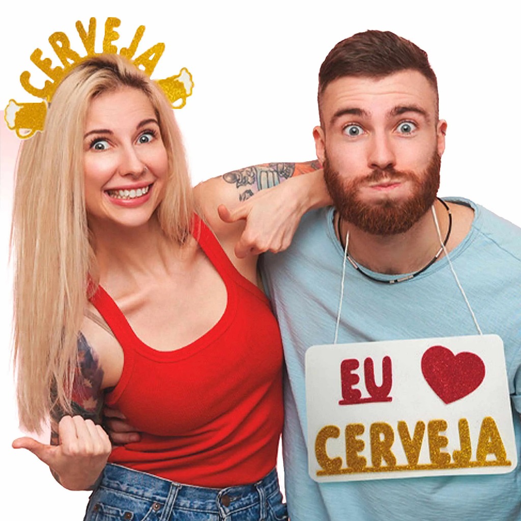 Fantasia de Carnaval Adulta pra Casal Kit Plaquinha e Tiara Com Frases