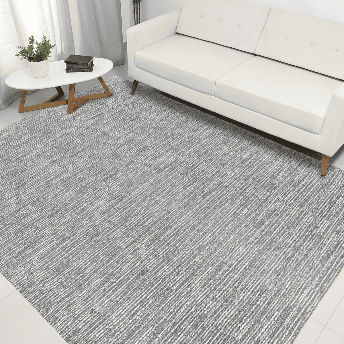 Tapete Sala Quarto Artesanal 3,00 X 2,00m Antiderrapante Cru Cinza Mesclado Moderno Rústico Grande