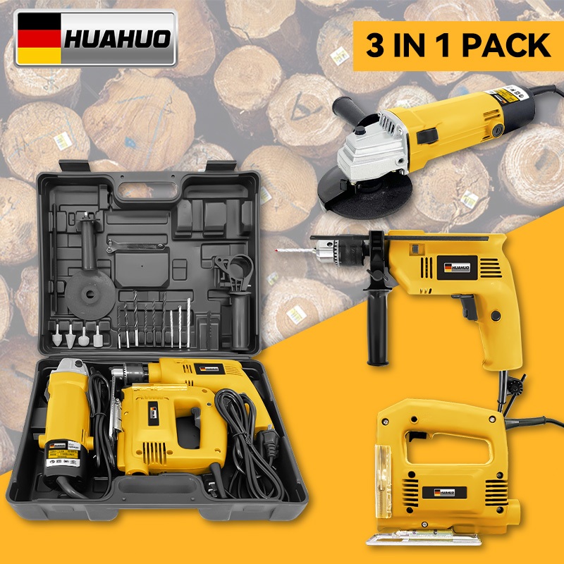 KIT 3 Furadeira Parafusadeira E Lixadeira Esmerilhadeira E Serra Tico Tico Com Peças E Maleta