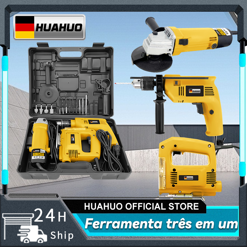 KIT Furadeira Parafusadeira E Lixadeira Esmerilhadeira E Serra Tico Tico Com Peças E Maleta~