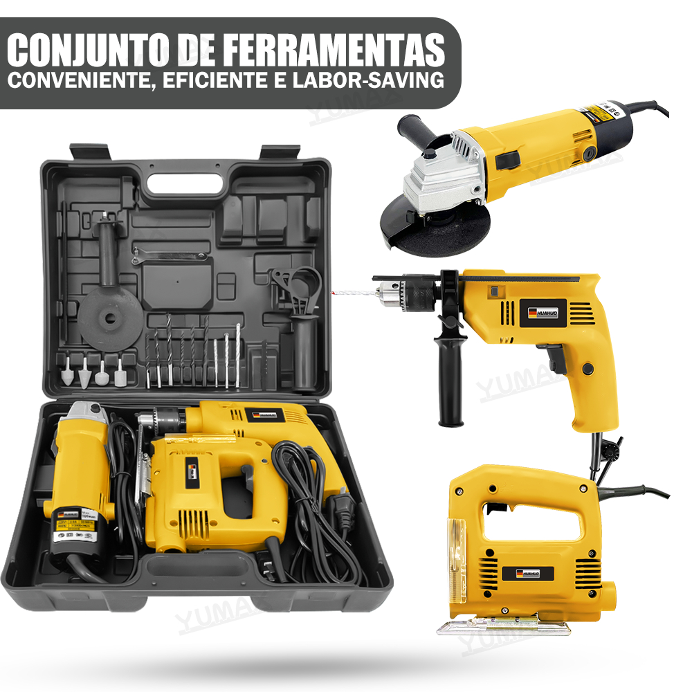 KIT Furadeira Parafusadeira E Lixadeira Esmerilhadeira E Serra Tico Tico Com Peças E Maleta